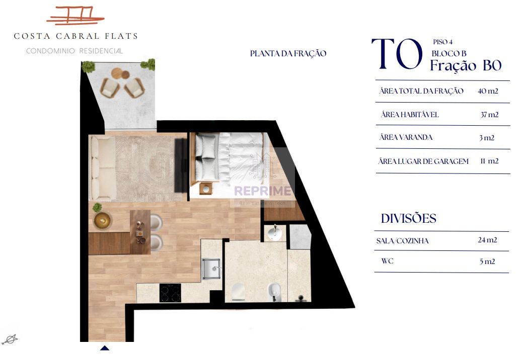 Inserido num empreendimento contemporâneo de 5 pisos, com apenas 6 apartamentos por piso, este apartamento situa-se no 4º andar, oferecendo uma vista privilegiada sobre a cidade. A sala espaçosa, com 24 m², abre-se para uma varanda de 3 m², ideal para desfrutar momentos de lazer ao ar livre.