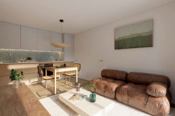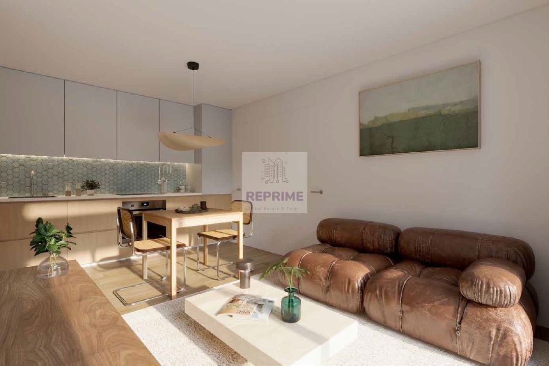 O apartamento conta com três quartos, incluindo uma suite privativa, dois WC completos e uma sala ampla de 16 m² que se integra harmoniosamente com uma cozinha equipada de 6 m², pensada para responder às necessidades do dia a dia com elegância e funcionalidade.