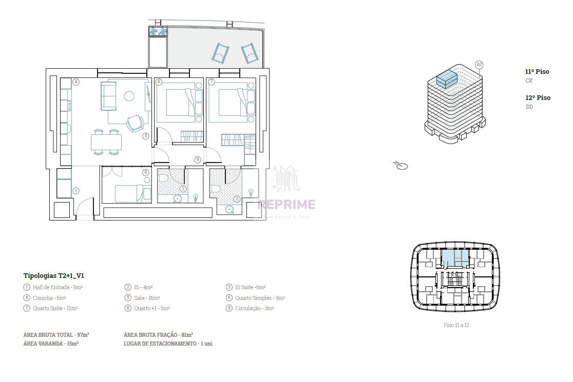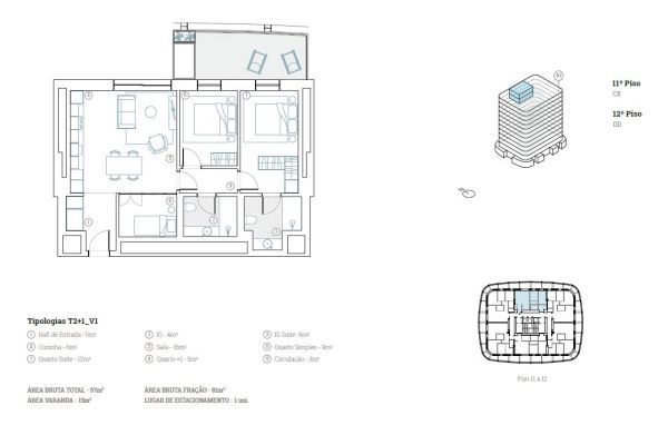 Inserido num empreendimento de 12 pisos, com apenas 6 apartamentos por piso, este apartamento situa-se no 11º andar, proporcionando vistas deslumbrantes sobre a cidade. A sua orientação e layout privilegiam a luminosidade natural, complementada por uma varanda generosa de 15 m², ideal para momentos de lazer e convívio.